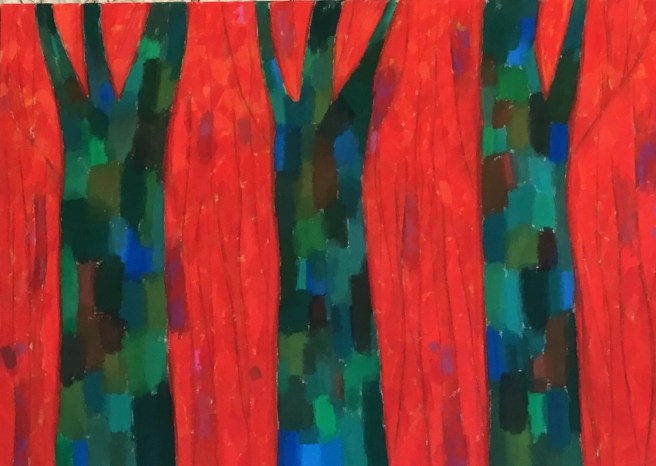People say when one is depressed one has no imagination. It’s a cave a dark pit with no exit. It’s as if one has wandered into Walmart and can not find the exit. That there is no value in it and no way out. Well when the tears come so does the wild imagining arrive. Bold colors a deep longing for connection. Even trees suffer depression. The need is personal and a need to clutch it close to feel. Become worst at articulating the imagery of despair sadness aloneness.